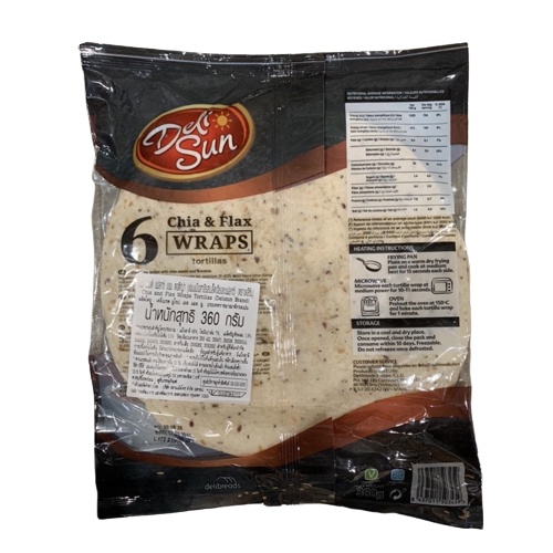 Deli Sun Tortillas Chia & Flax Wraps 6pcs 360g