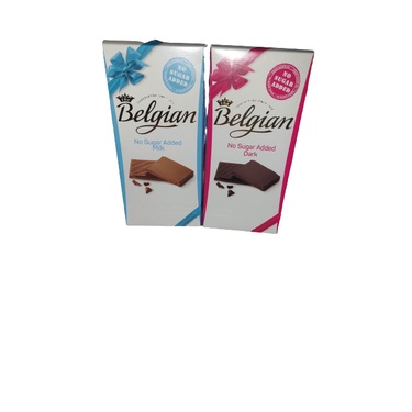 Famous Belgian Chocolates (Plain Dark Choco) – NO SUGAR ADDED The Belgian No Sugar Added Plain Dark Chocolate is a guilt-free chocolate bar containing only 3.5g net carb per square cut! Belgian No Added Sugar Milk Chocolate 100g Belgian Milk Chocolate with sweetener. Packed in Aluminium Foil Bag with Cold Pack to keep your Chocolate…