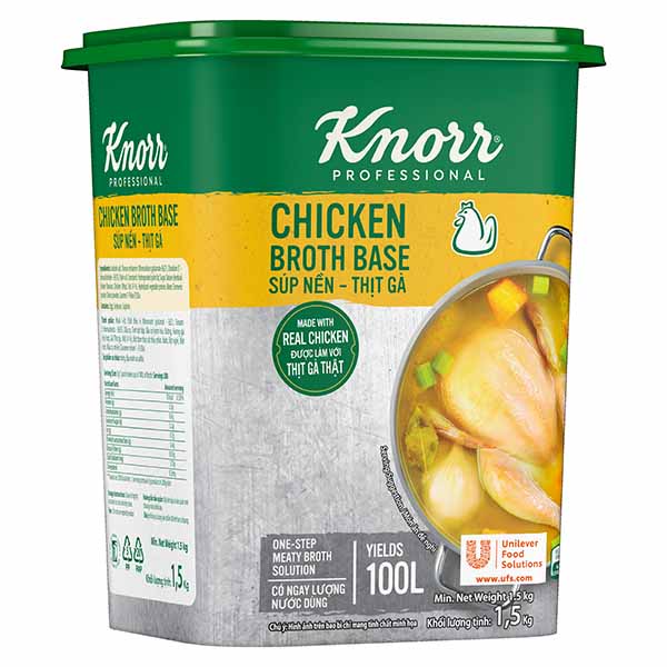 Knorr Chicken Broth Base helps you consistently deliever rich, full meaty flavor in your dishes that diners love Dissolve 14g-20g of Knorr Chicken Broth Base, to taste, per 1L of water