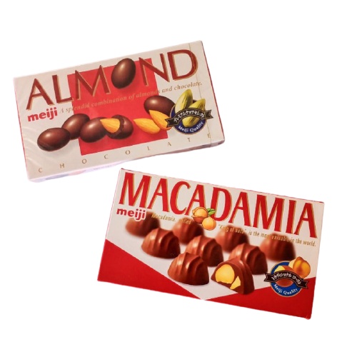 Meiji Almond, Meiji Macadamia, Milk Chocolate 50g, BlackChocolate 50g, Hi Milk Choco 50g, Meiji Black Almond, Macadamia Black, Strawberry Chocolate, FujiyaMilky, AnpanmanChoco, pekosanriostrawberry