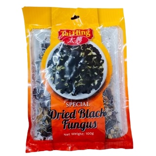 Tai Hing Black Fungus 100g – 100g – Black fungus is an edible wild mushroom sometimes known as tree ear or cloud ear fungus, given its dark, ear-like shape. It is often used in Asian cooking, especially Chinese cuisine. – Product of China