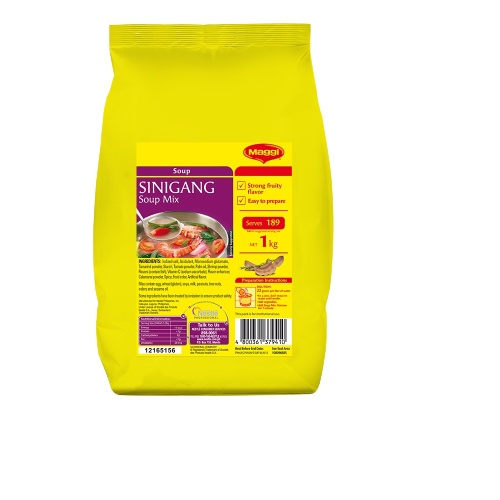 MAGGI® Sinigang Soup Mix is made with real tamarinds which delivers a fruity-sour flavor and aroma of authentic tamarind broth, making it perfect for sinigang recipes or as souring agent for dishes. This versatile product can also replace calamansi in marinades which simplifies restaurant operations, protects food cost of seasonal ingredients, controls spoilage of fresh produce, enhances umami of grilled, fried, and stir-fried dishes, and many more. Storage: Store in a cool dry place. Avoid direct sunlight. Once opened, ensure to seal properly or transfer to a sealed container to avoid moisture.